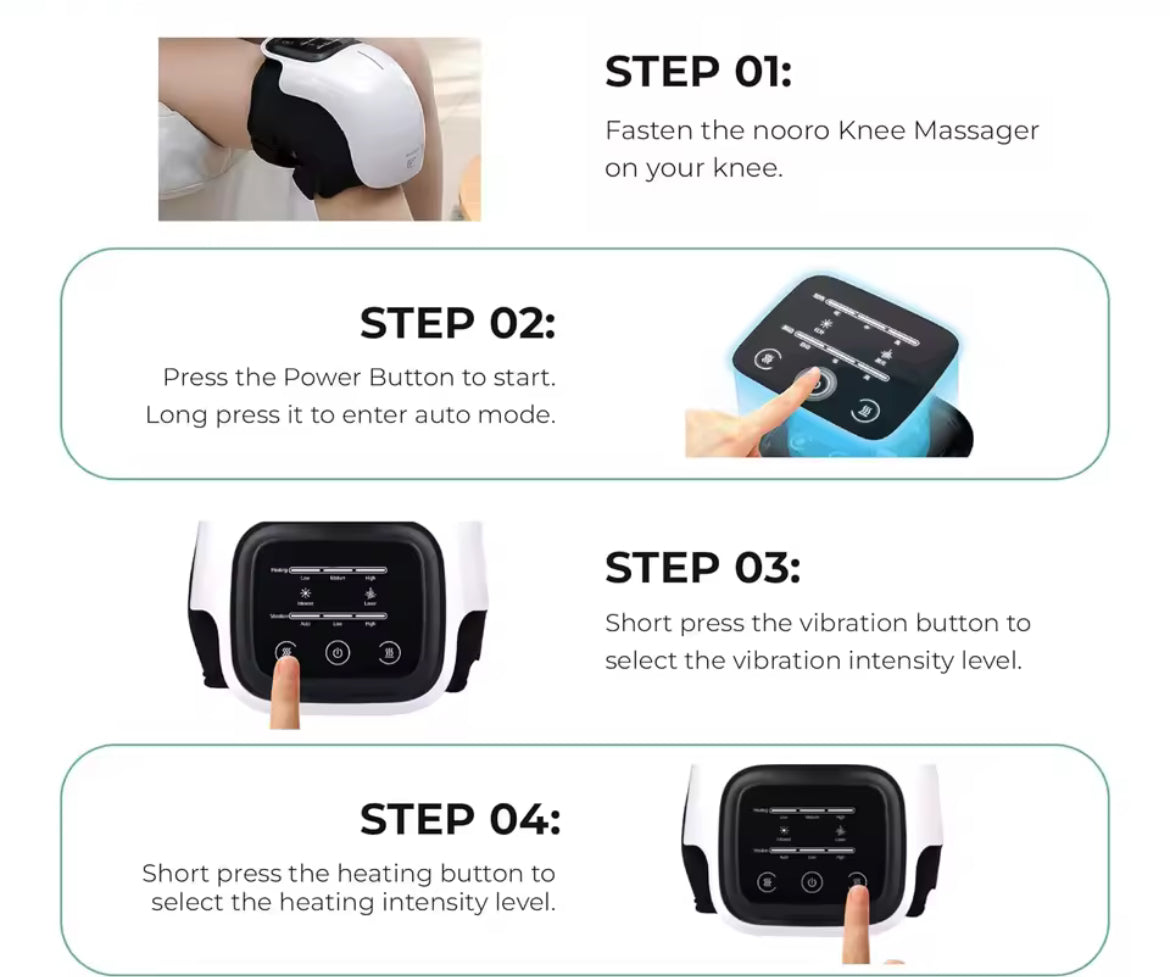 Simply strap the brace around your knee, power it on, and select your preferred heat and massage intensity. The infrared heat penetrates deep into your tissues, while the vibration massage improves circulation and eases discomfort within minutes.